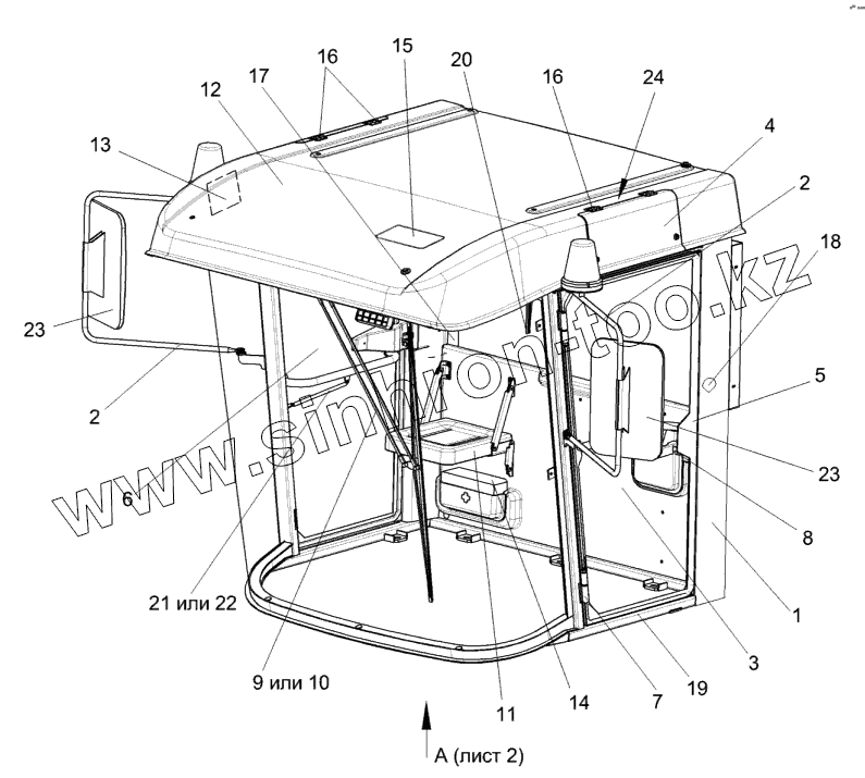Каталог запасных частей к технике: Гомсельмаш КВК-800 (FS80-5). Кабина КВС-2-0122000
