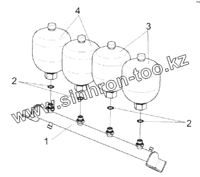 Каталог запасных частей к технике: Гомсельмаш КВК-800 (FS80-7). Блок пневмогидроаккумуляторов КВС-1-0602540