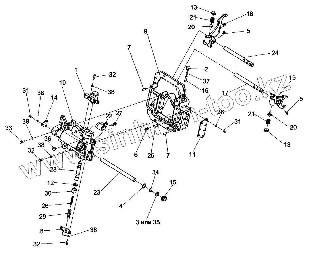 Каталог запасных частей к технике: Гомсельмаш КВК-800 (FS80-7). Механизм переключения диапазонов 3518020-46160