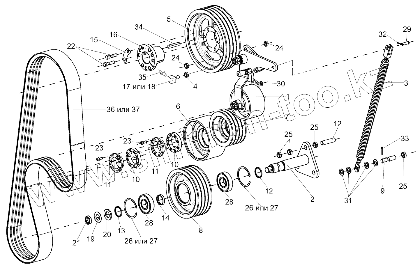 Каталог запасных частей к технике: Гомсельмаш КВК-800 (FS80-7). Привод доизмельчающего устройства КВС-1-0132100