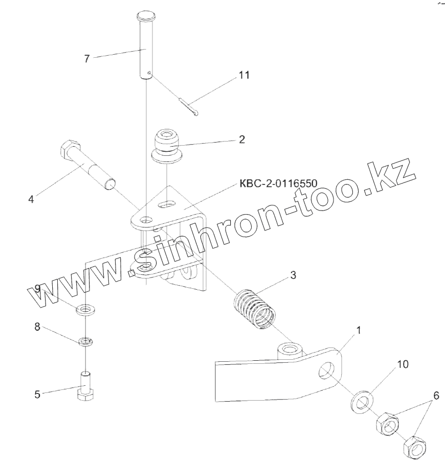 Каталог запасных частей к технике: Гомсельмаш КВК-800 (FS80-7). Установка опоры КВС-2-0116550