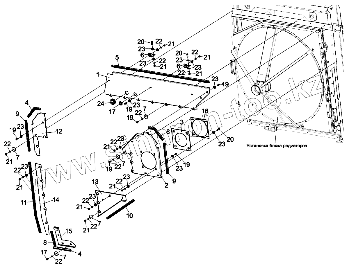 Каталог запасных частей к технике: Гомсельмаш КВК-800 (FS80-7). Установка щитков КВС-7-0156000