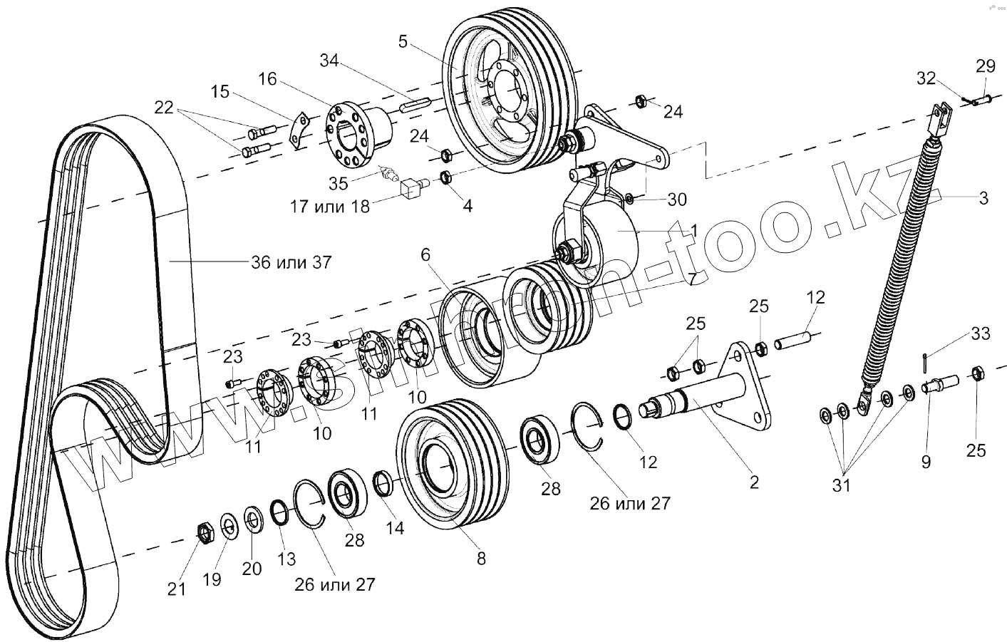 Каталог запасных частей к технике: Гомсельмаш КВК-800 (FS80). Привод доизмельчающего устройства КВС-1-0132100