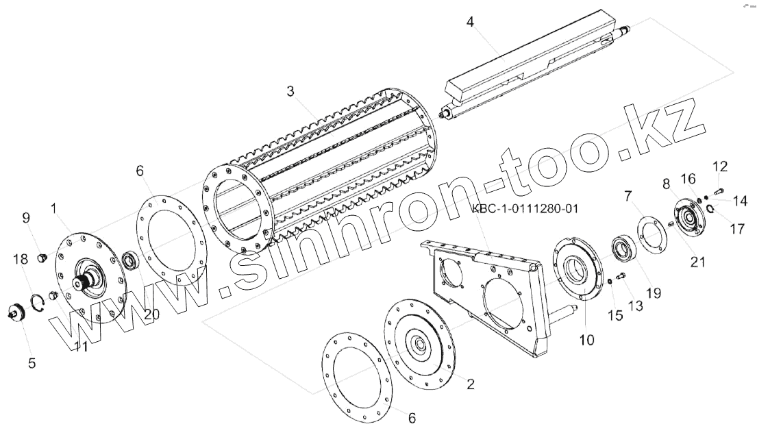 Каталог запасных частей к технике: Гомсельмаш КВК-800 (FS80). Валец передний нижний КВС-2-0111800