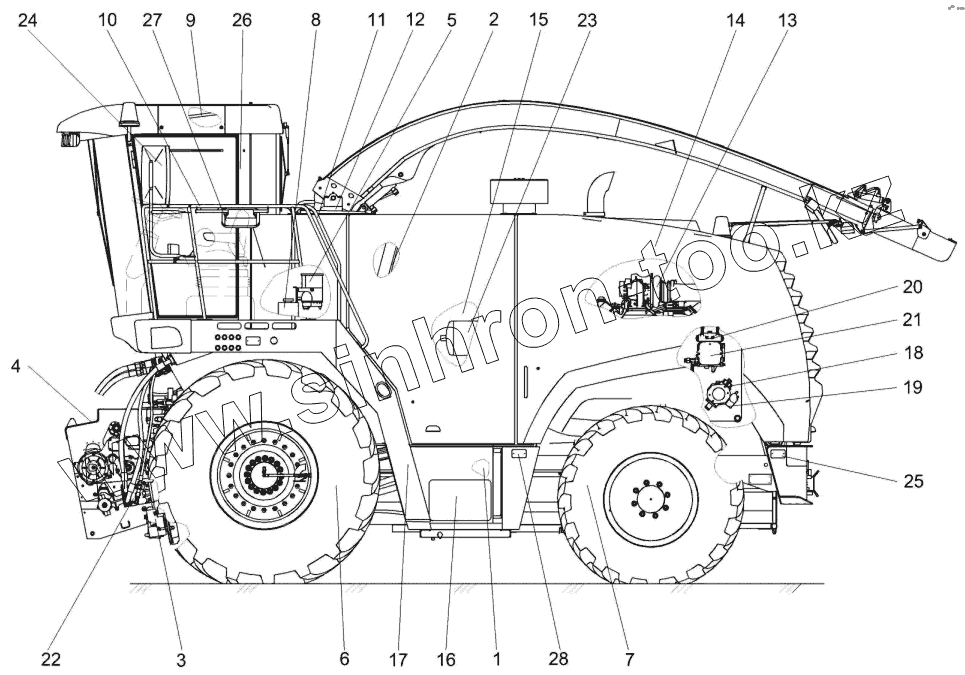 Каталог запасных частей к технике: Гомсельмаш КВК-8060. Измельчитель самоходный КВК 0100000-01 (вид слева)