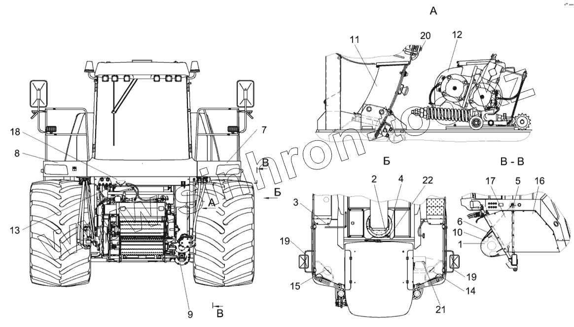 Каталог запасных частей к технике: Гомсельмаш КВК-8060. Измельчитель самоходный КВК 0100000-01 (вид спереди)