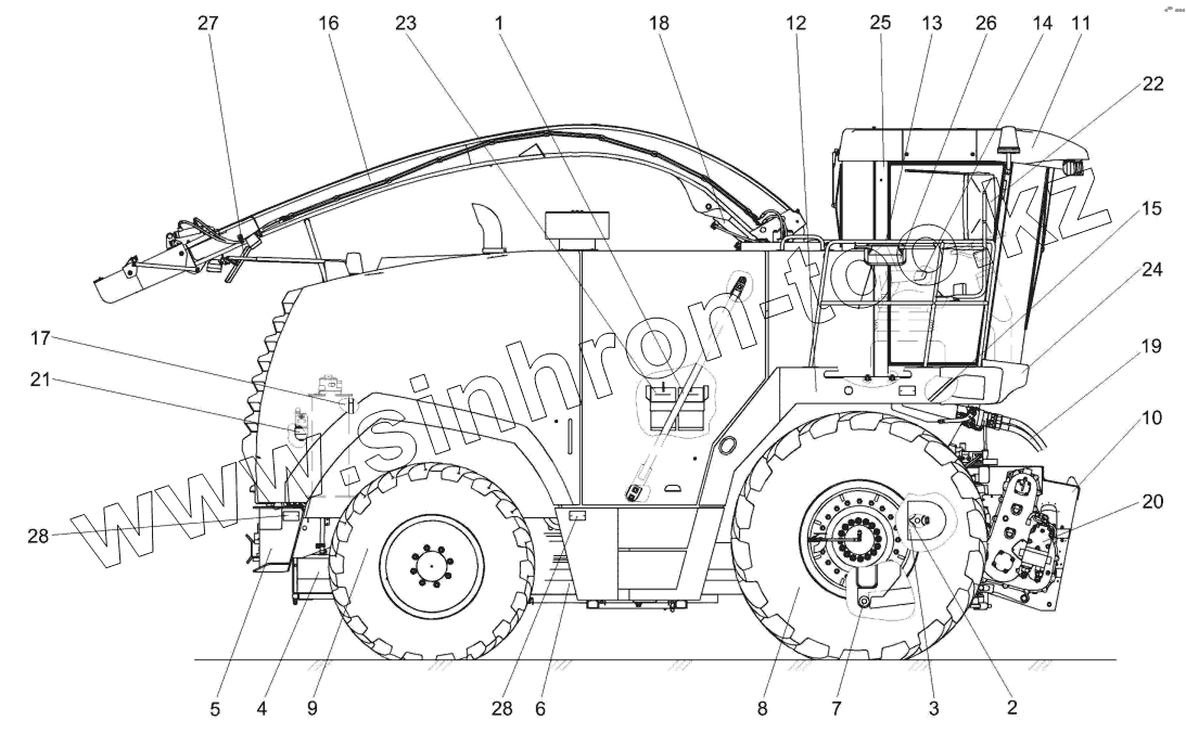 Каталог запасных частей к технике: Гомсельмаш КВК-8060. Измельчитель самоходный КВК 0100000-01 (вид справа)