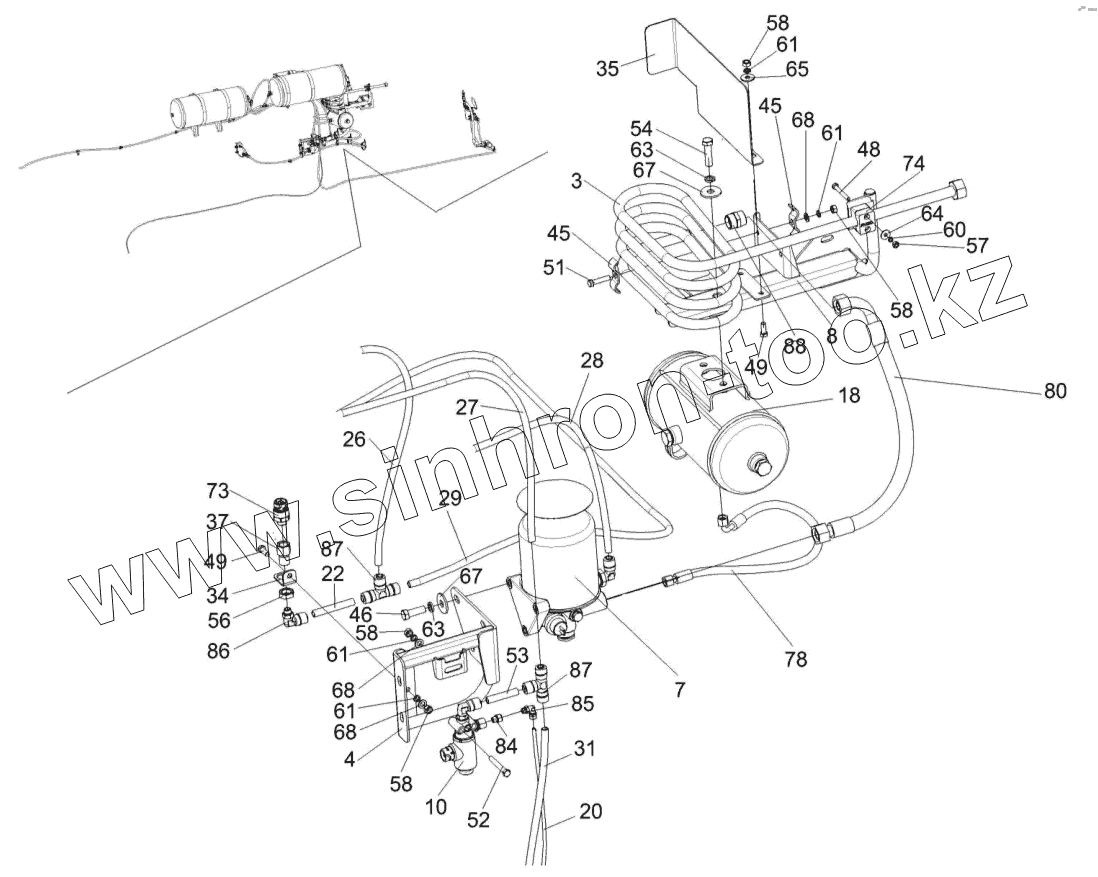 Каталог запасных частей к технике: Гомсельмаш КВК-8060. Пневмосистема КВК 0800000 (лист 3)
