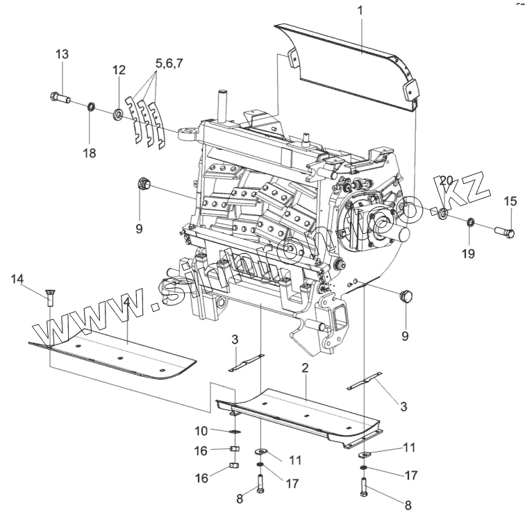Каталог запасных частей к технике: Гомсельмаш КВК-8060. Установка поддона КВК 0115230
