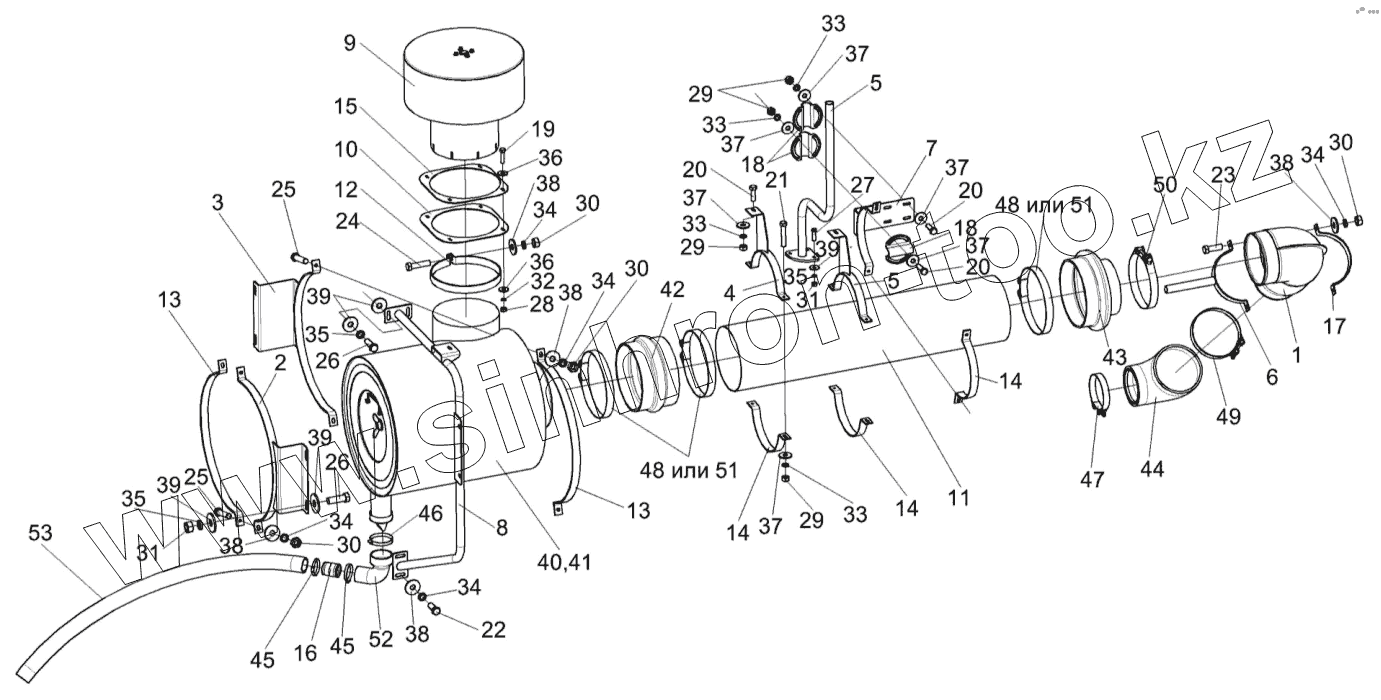 Каталог запасных частей к технике: Гомсельмаш КВК-8060. Установка воздухоочистителя КВК 0153000