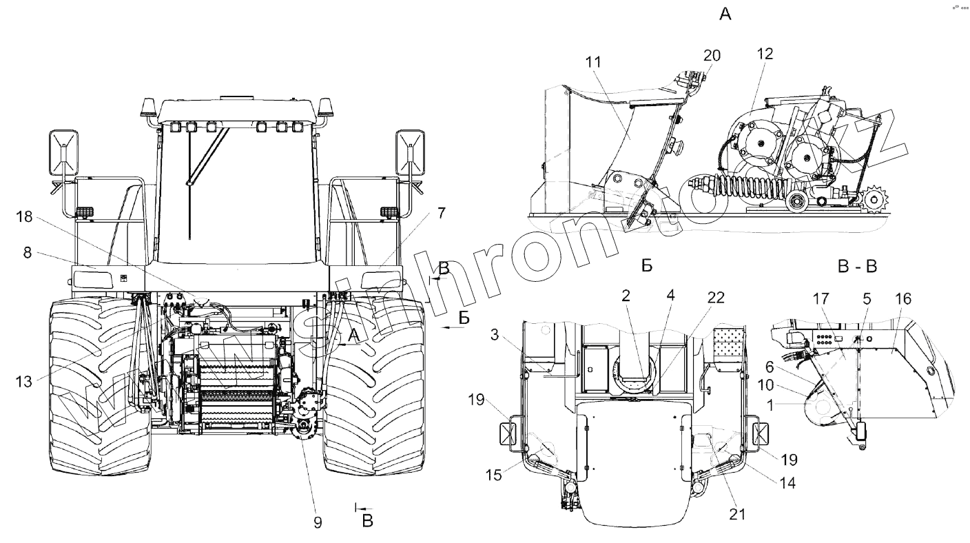 Каталог запасных частей к технике: Гомсельмаш КВК-8060. Измельчитель самоходный КВК 0100000-01 (вид спереди)