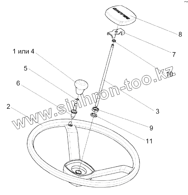 Каталог запасных частей к технике: Гомсельмаш КВК-8060. Установка колеса рулевого УЭС 0302560