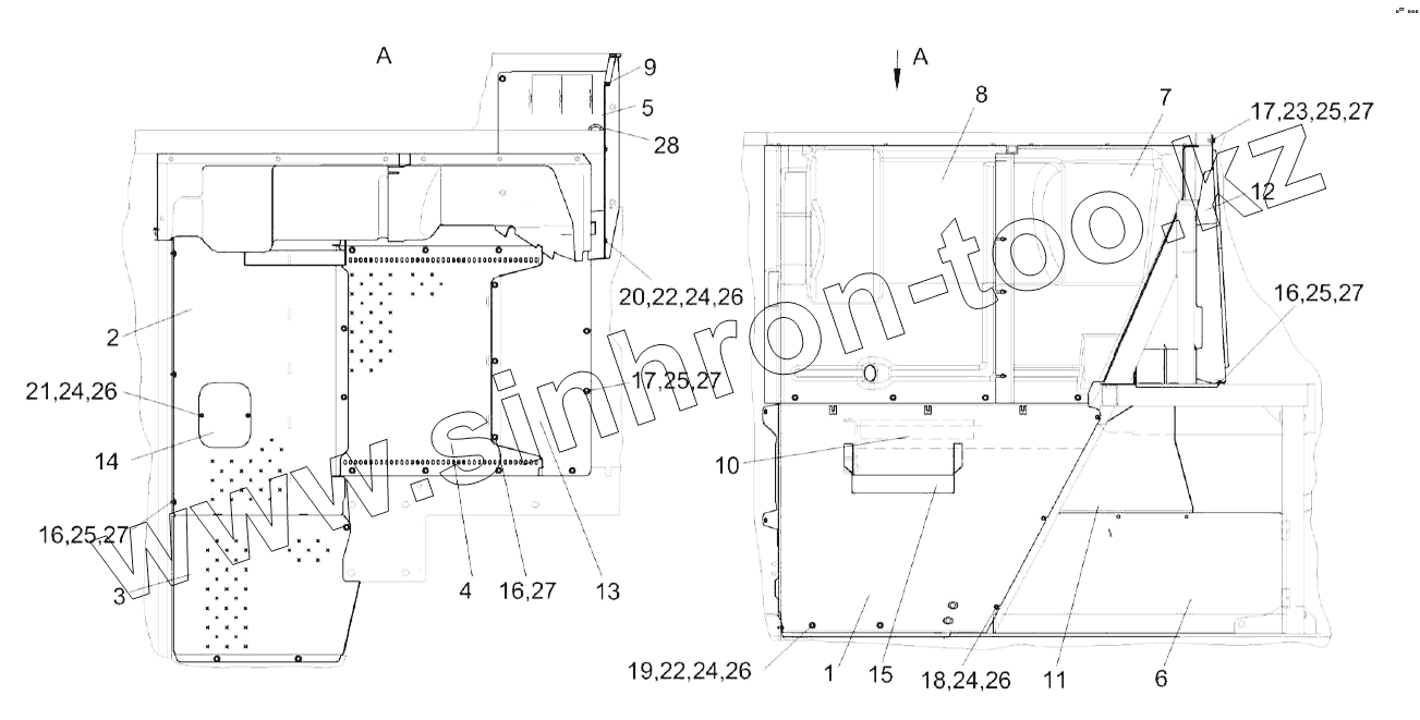 Каталог запасных частей к технике: Гомсельмаш КВК-8060. Установка настилов и ограждений КВК 0169000