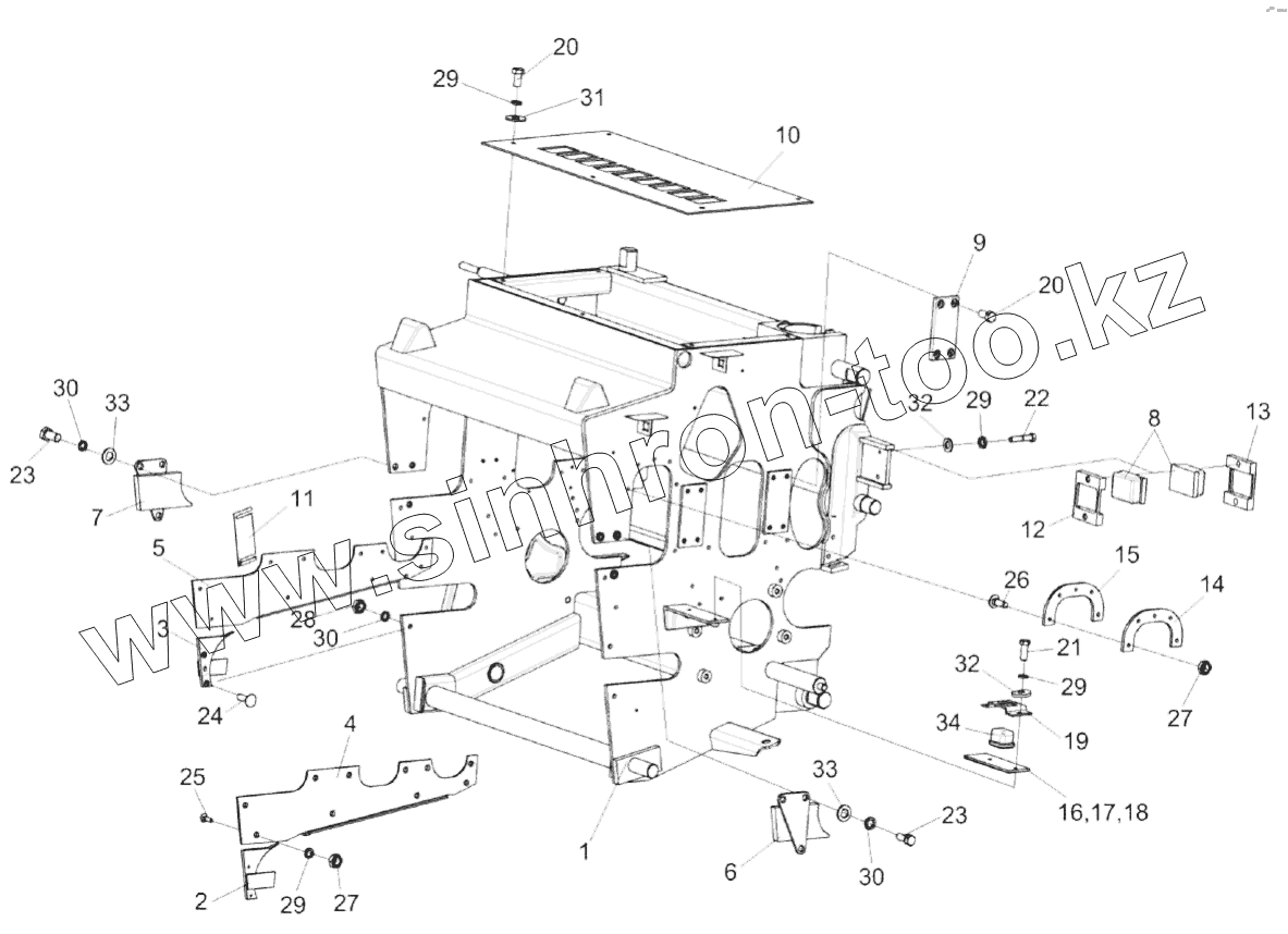 Каталог запасных частей к технике: Гомсельмаш КВК-8060. Установка рамы аппарата питающего
