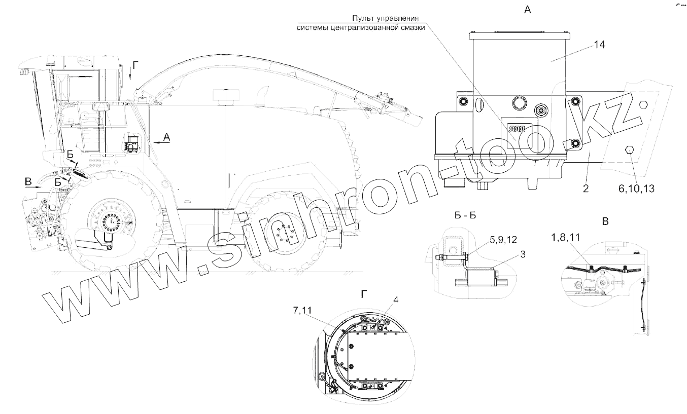 Каталог запасных частей к технике: Гомсельмаш КВК-8060. Установка централизованной смазки КВК 0100600