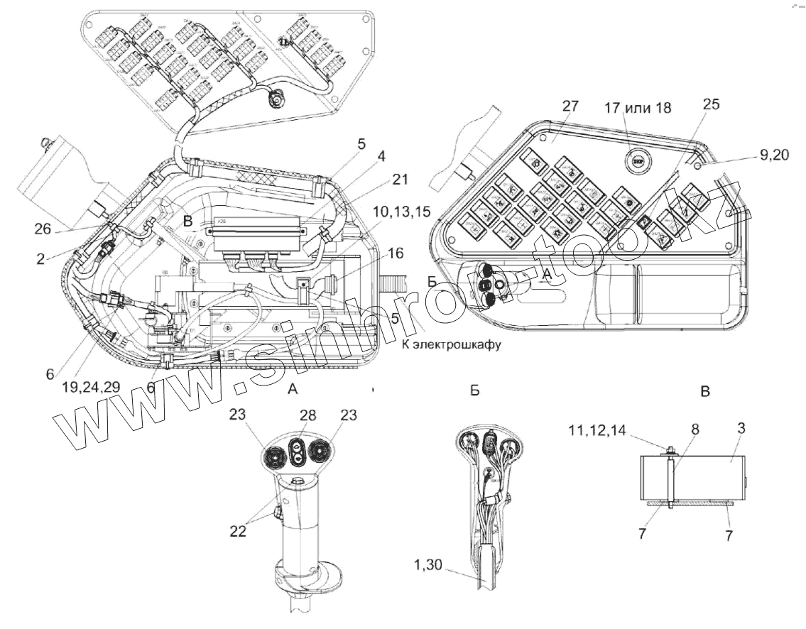 Каталог запасных частей к технике: Гомсельмаш КВК-8060. Электрооборудование пульта управления КВК 0129050А