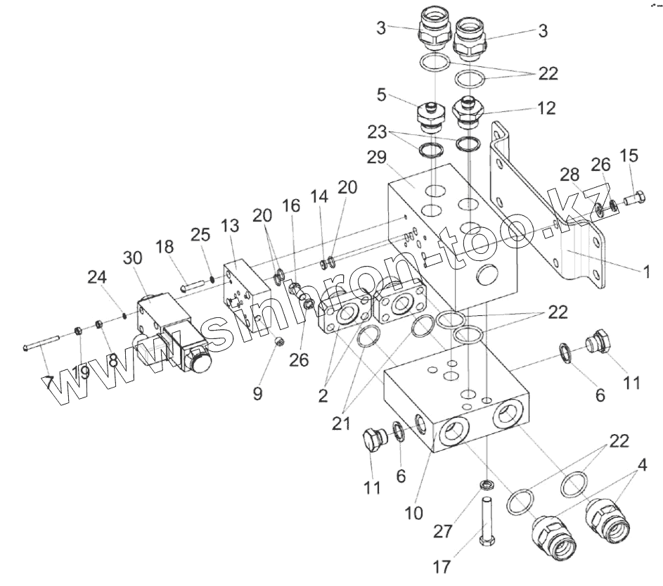Каталог запасных частей к технике: Гомсельмаш КВК-8060. Гидроблок подключения управляемого моста КВК 0601500