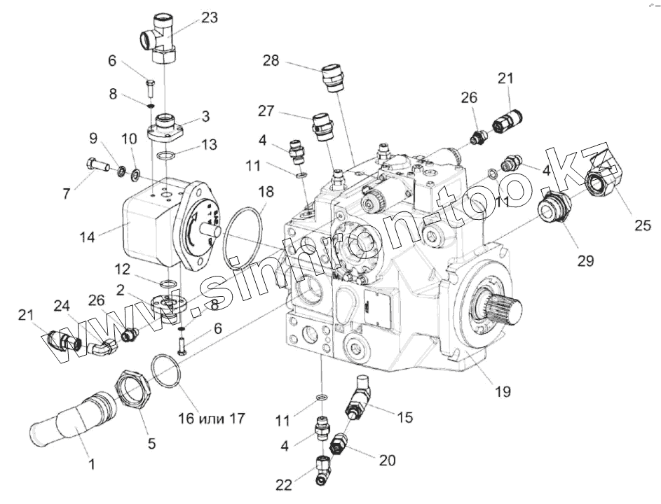 Каталог запасных частей к технике: Гомсельмаш КВК-8060. Гидронасос привода питающего аппарата КВК-2-0604120
