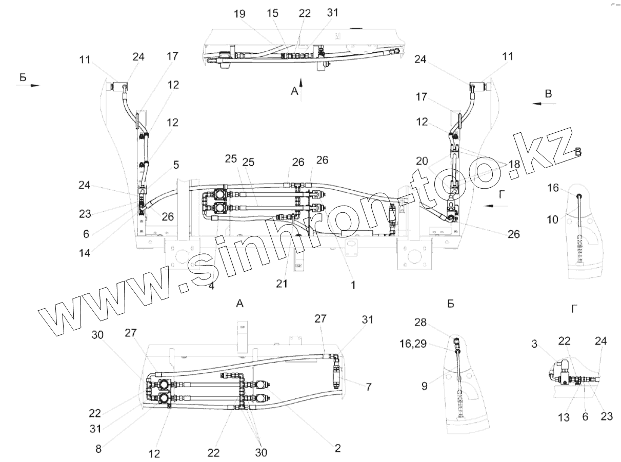 Каталог запасных частей к технике: Гомсельмаш КВК-8060. Пневмосистема подкачки шин КВК-2-0801000