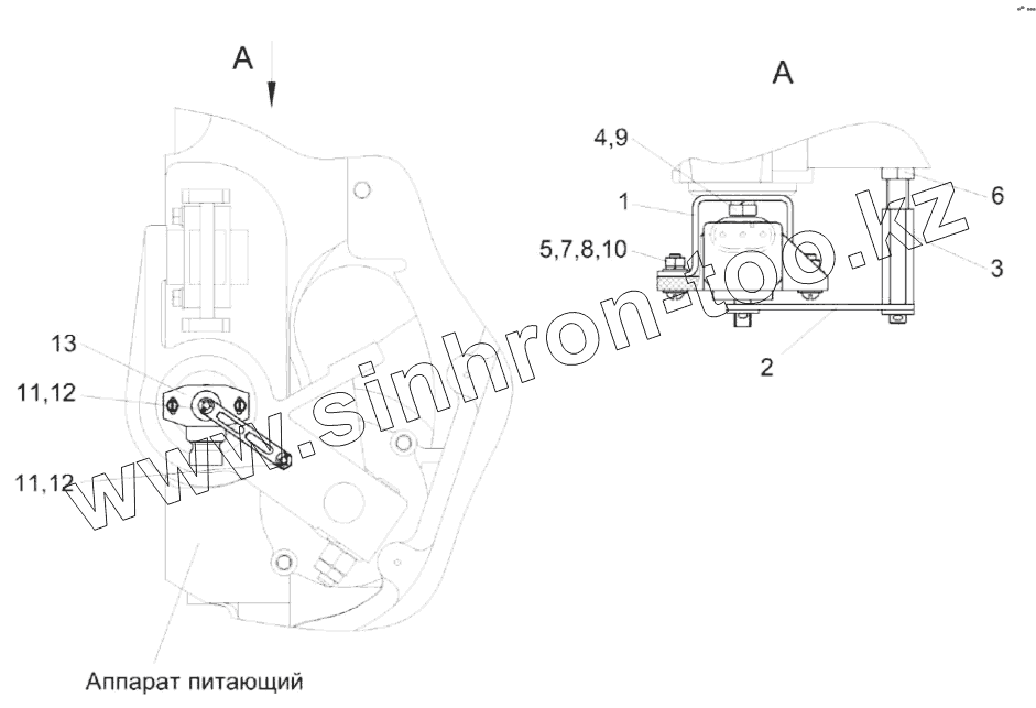 Каталог запасных частей к технике: Гомсельмаш КВК-8060. Установка датчика положения КВК 0111800