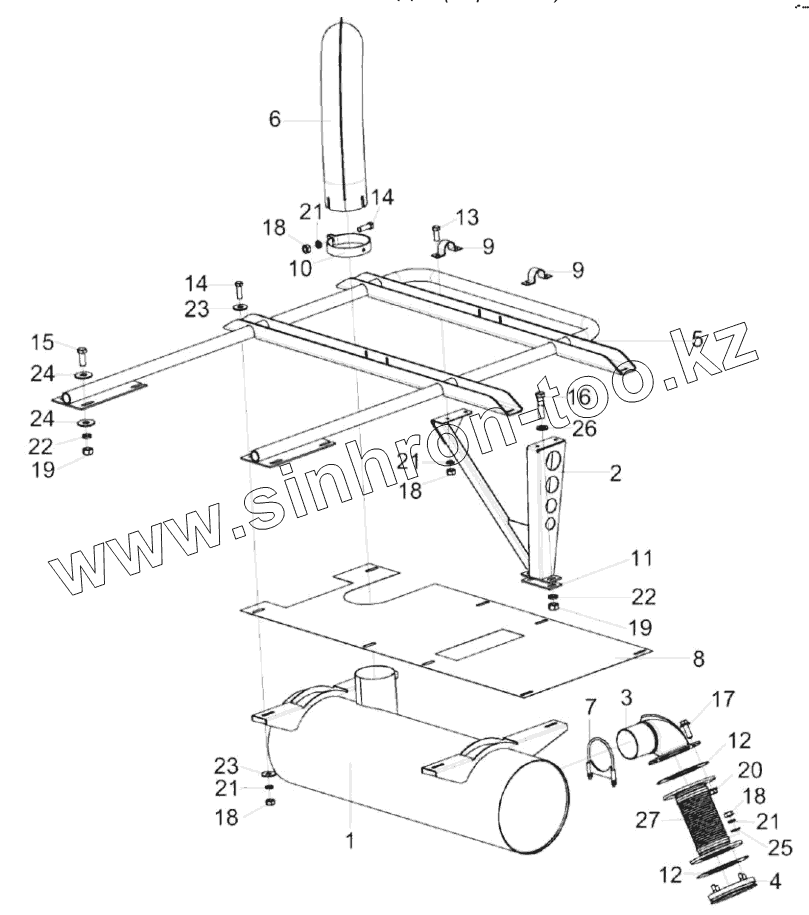 Каталог запасных частей к технике: Гомсельмаш КВК-8060. Установка глушителя КВК-2-0157000