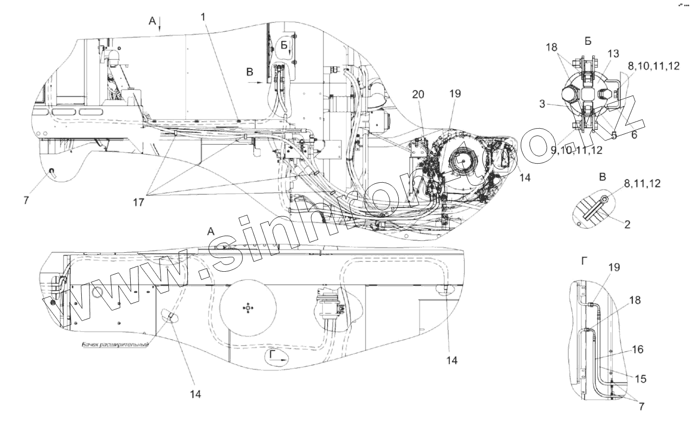 Гидросистема привода стояночного тормоза КВК-2-0606000А (вид спереди)