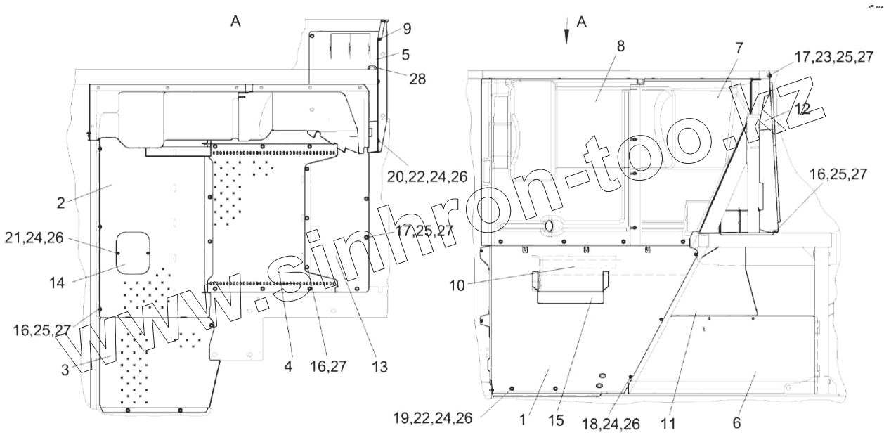 Каталог запасных частей к технике: Гомсельмаш КВК-8060. Установка настилов и ограждений КВК 0169000