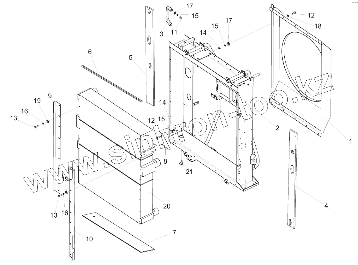 Каталог запасных частей к технике: Гомсельмаш КВК-8060. Установка радиатора КВК 0152010