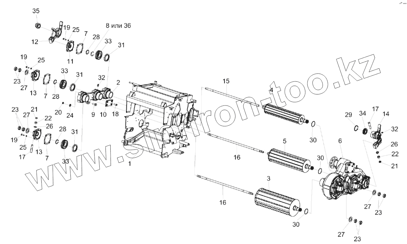 Каталог запасных частей к технике: Гомсельмаш КВК-8060. Установка вальцев верхних