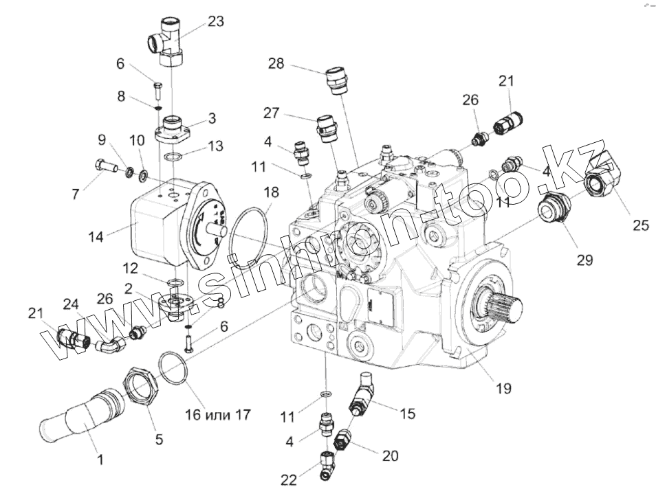 Каталог запасных частей к технике: Гомсельмаш КВК-8060. Гидронасос привода питающего аппарата КВК-2-0604120
