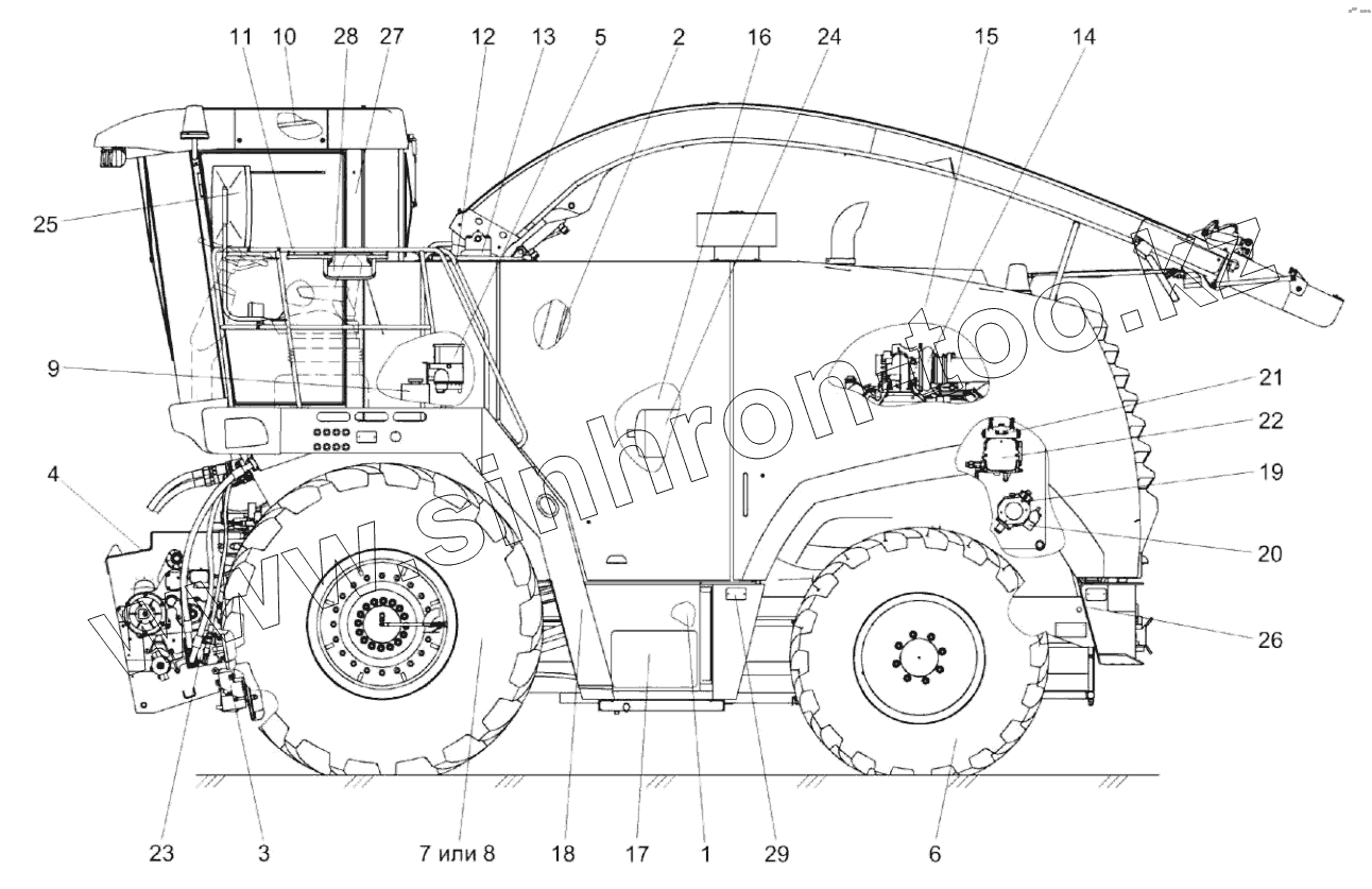 Каталог запасных частей к технике: Гомсельмаш КВК-8060. Измельчитель самоходный КВК 0100000 (вид слева)