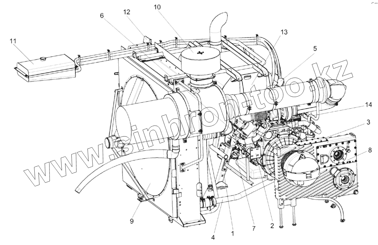 Каталог запасных частей к технике: Гомсельмаш КВК-8060. Установка двигателя OM 502LA КВК 0150000