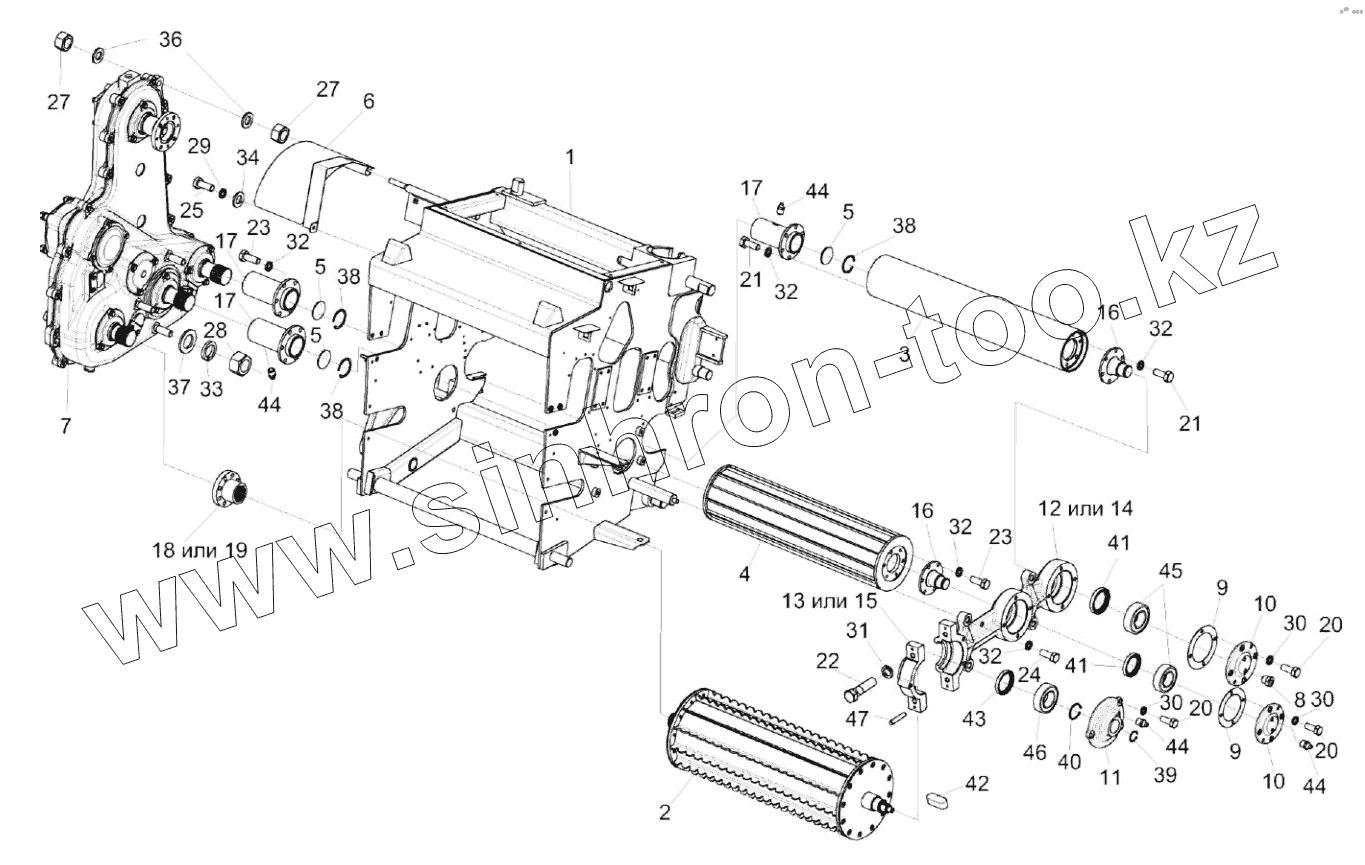 Каталог запасных частей к технике: Гомсельмаш КВК-8060. Установка вальцев нижних