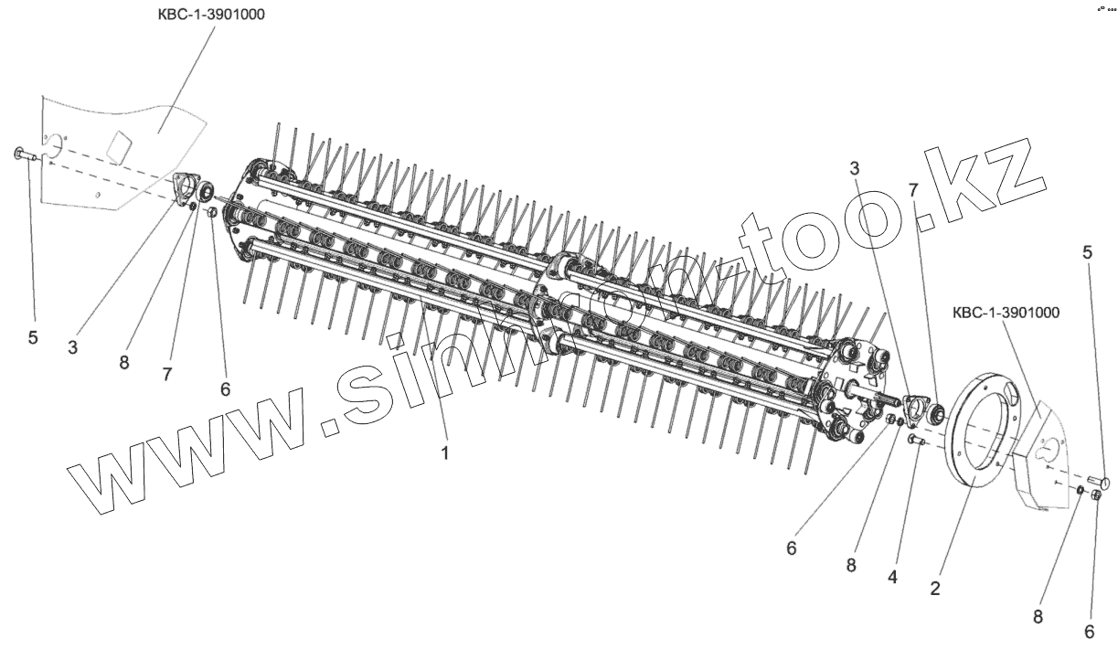 Каталог запасных частей к технике: Гомсельмаш КВС-1-3900000. Установка устройства подбирающего