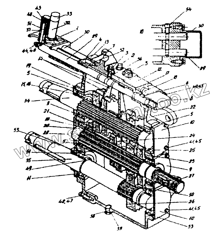 Каталог запасных частей к технике: Гомсельмаш КЗР-10. Коробка четырехскоростная (КЗР0114000Б)