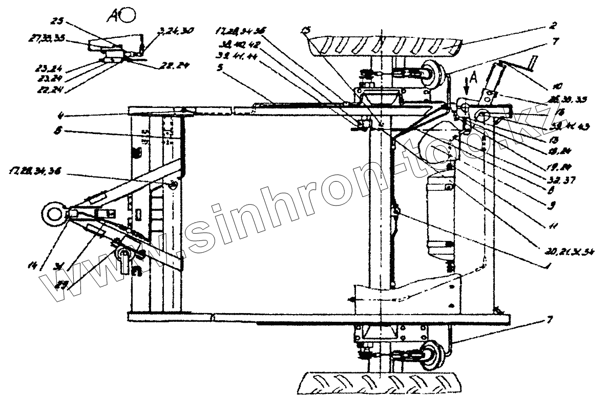 Каталог запасных частей к технике: Гомсельмаш КЗР-10. Шасси (вид сверху) (КЗР0201000Б)