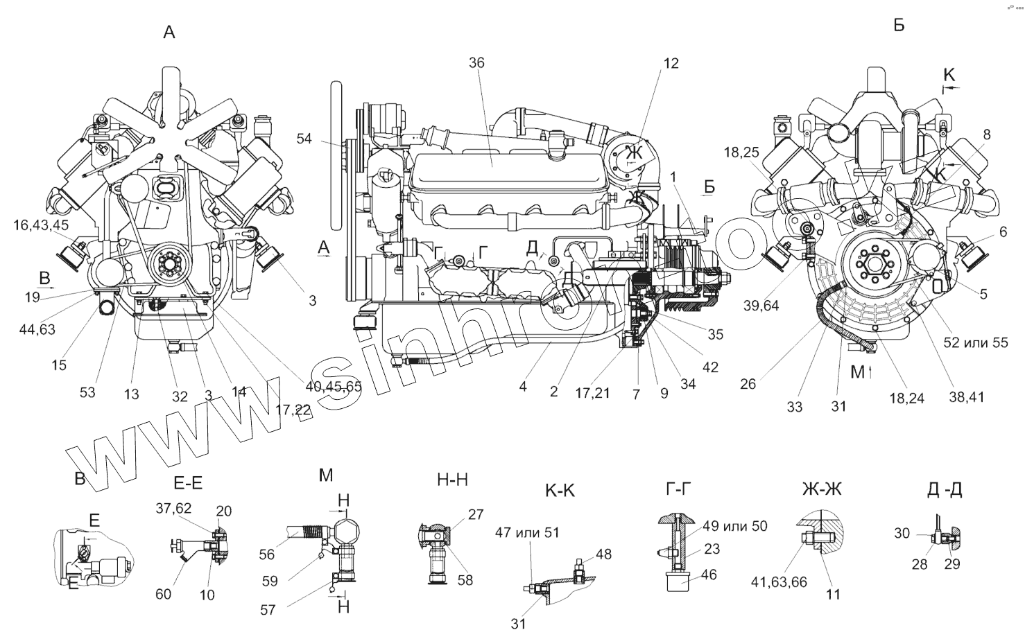 Каталог запасных частей к технике: Гомсельмаш КЗС-10К (ПОЛЕСЬЕ). Двигатель КЗК-10-0106010