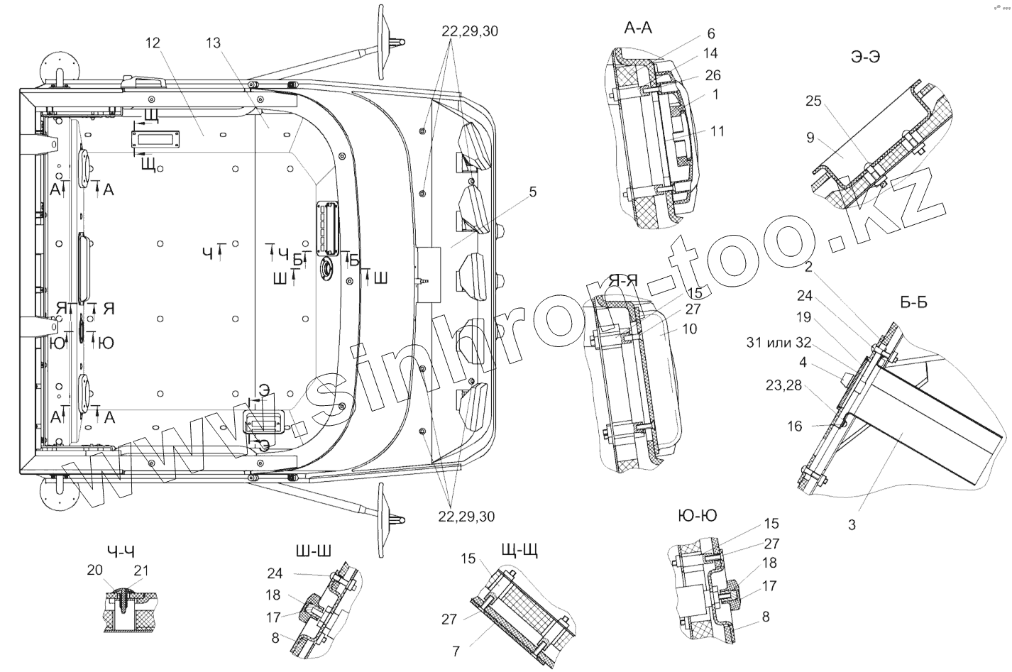 Каталог запасных частей к технике: Гомсельмаш КЗС-10К (ПОЛЕСЬЕ). Кабина (вид снизу) СЭУ 0200000-02
