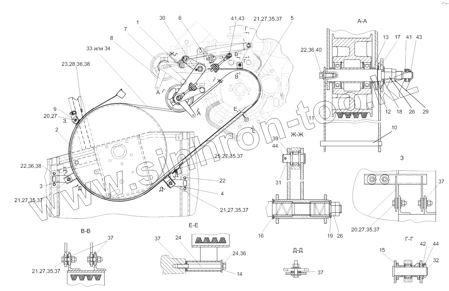 Каталог запасных частей к технике: Гомсельмаш КЗС-10К (ПОЛЕСЬЕ). Привод главного контрпривода КЗК-10-0220200