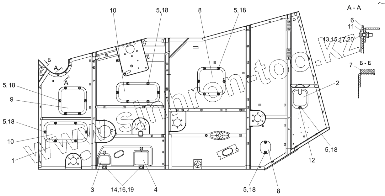 Каталог запасных частей к технике: Гомсельмаш КЗС-10К Палессе GS10. Боковина левая КЗК-10-0202030-01