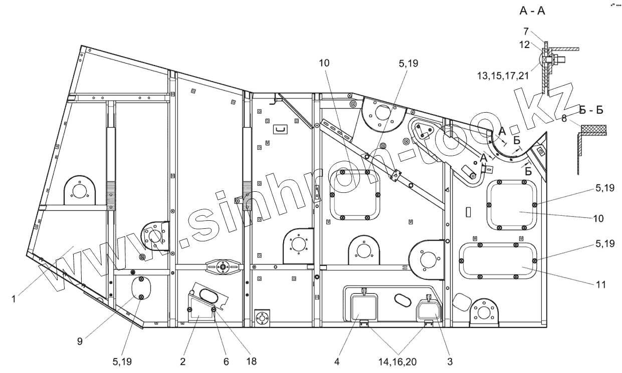 Каталог запасных частей к технике: Гомсельмаш КЗС-10К Палессе GS10. Боковина правая КЗК-10-0202040