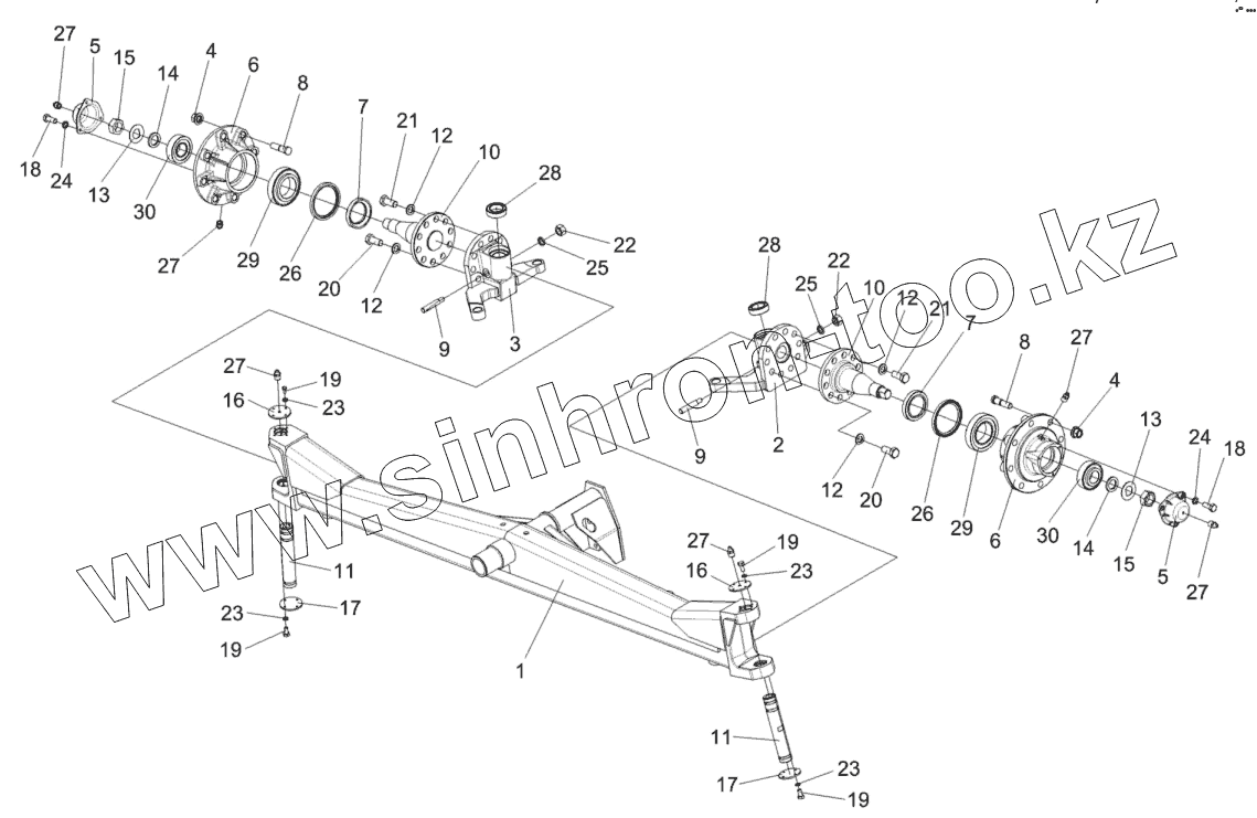 Каталог запасных частей к технике: Гомсельмаш КЗС-10К Палессе GS10. Мост управляемых колес КЗК-10-0109300