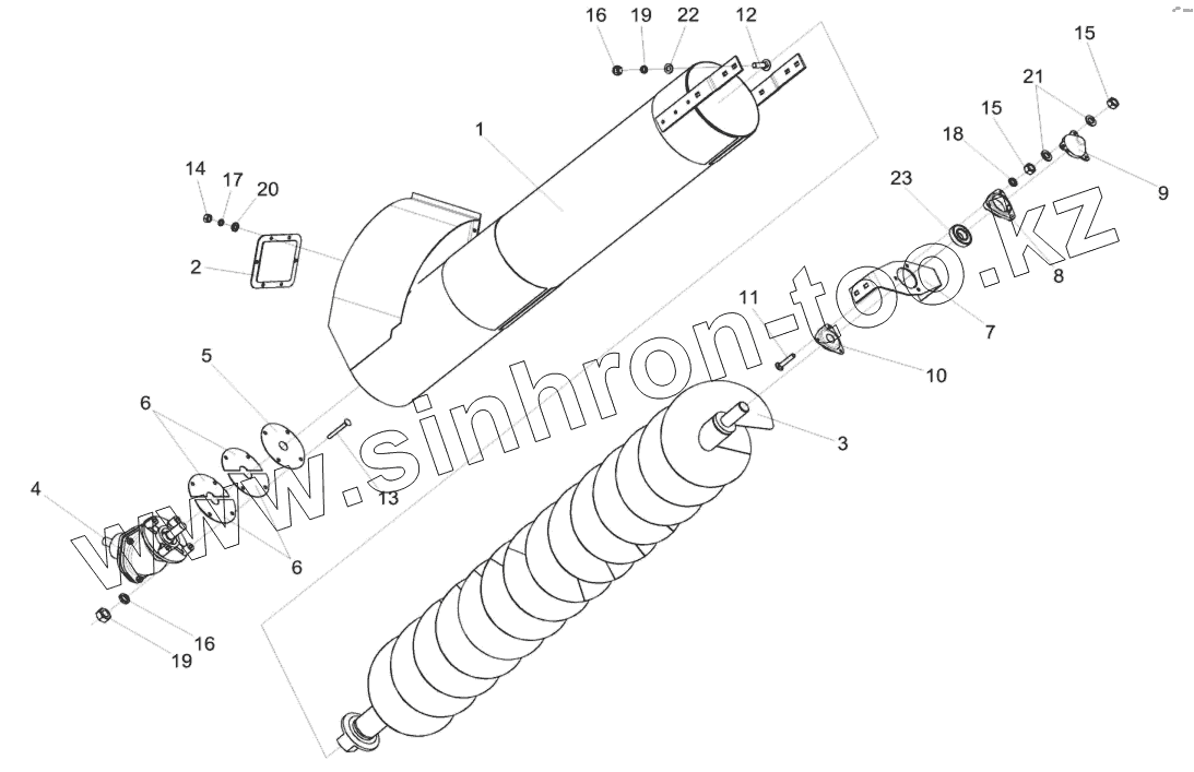 Каталог запасных частей к технике: Гомсельмаш КЗС-10К Палессе GS10. Шнек загрузной зерновой КЗК-10-0216000
