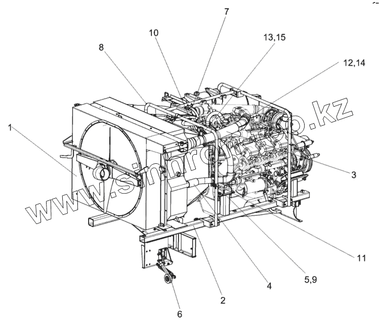 Каталог запасных частей к технике: Гомсельмаш КЗС-10К Палессе GS10. Установка двигателя КЗК-10-2-0106000