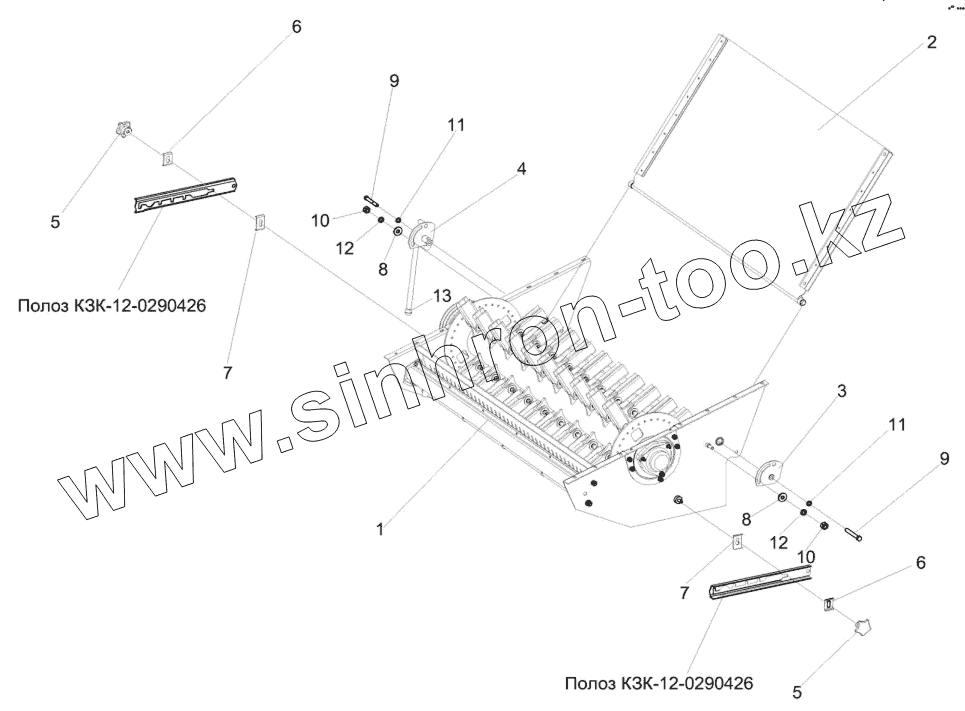 Каталог запасных частей к технике: Гомсельмаш КЗС-10К Палессе GS10. Установка соломоизмельчителя КЗК-10-0290600