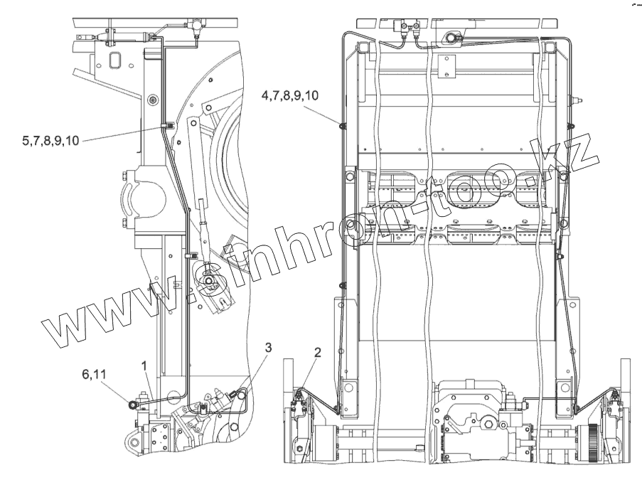 Гидросистема рабочих органов и рулевого управления КЗК-10-1-0602000Б (вид справа)