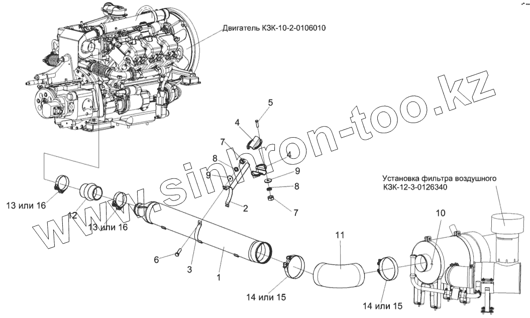 Каталог запасных частей к технике: Гомсельмаш КЗС-10К Палессе GS10. Установка воздухоочистителя КЗК-10-2-0106080