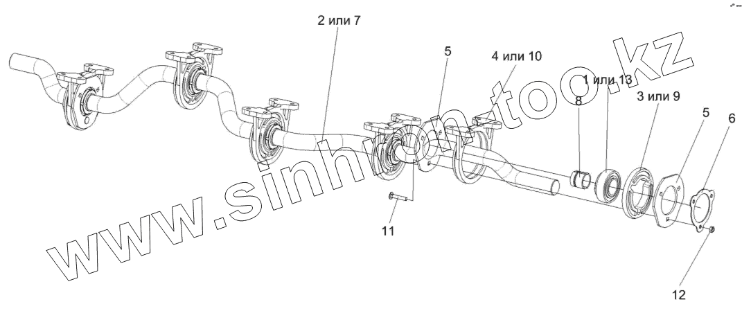 Каталог запасных частей к технике: Гомсельмаш КЗС-10К Палессе GS10. Вал коленчатый ведомый КЗК-12-0212080