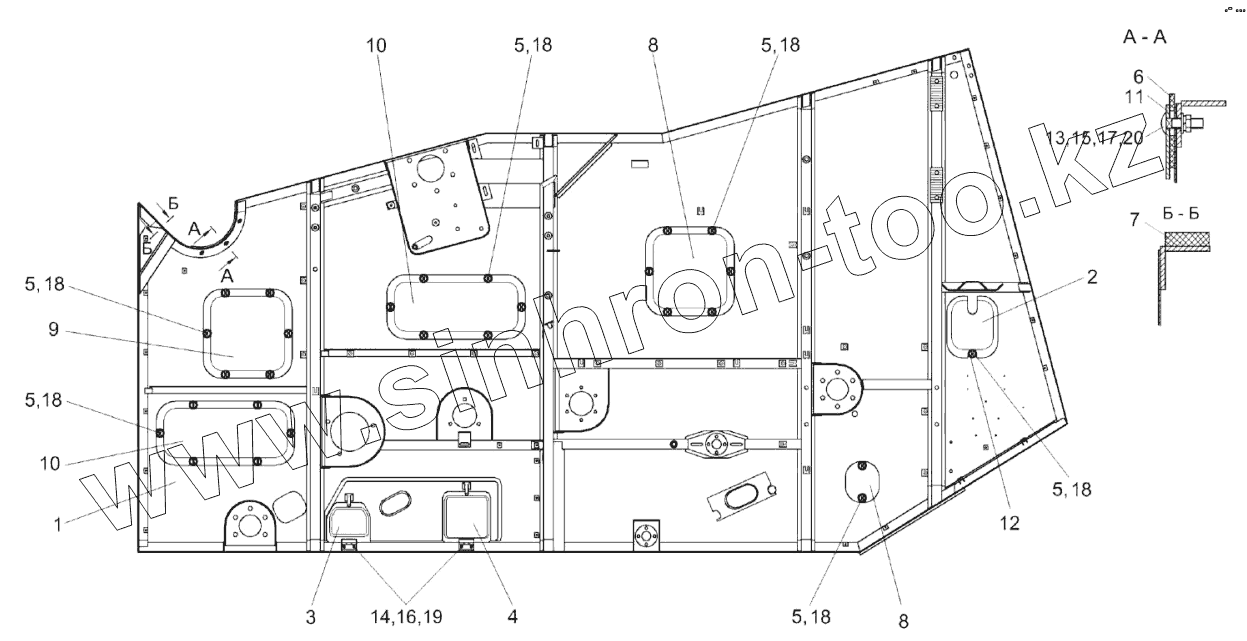 Каталог запасных частей к технике: Гомсельмаш КЗС-10К Палессе GS10. Боковина левая КЗК-10-0202030-01