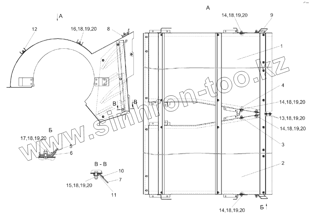 Каталог запасных частей к технике: Гомсельмаш КЗС-10К Палессе GS10. Кожух сдвоенный КЗК-10-0217100
